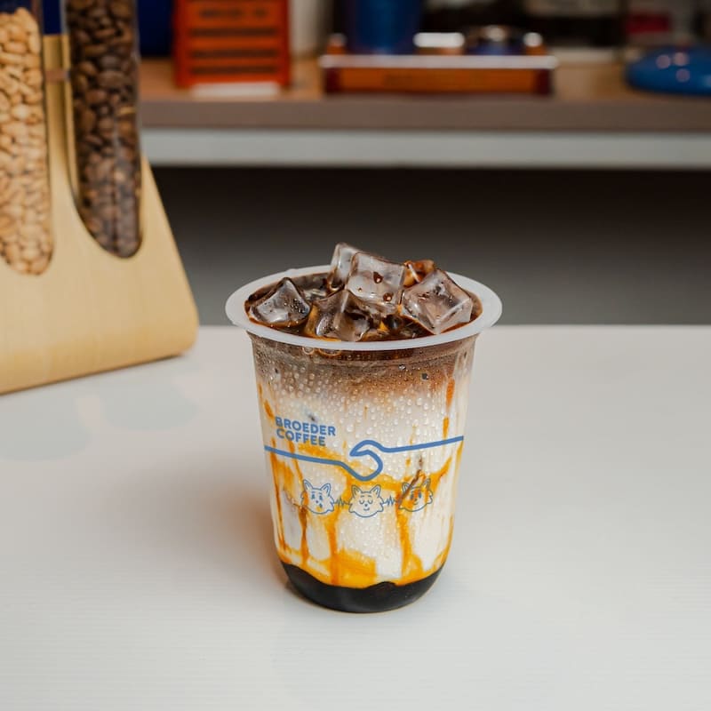 Kopi susu full arabica dengan gula aren.